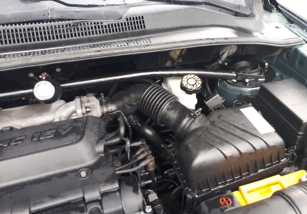 Распорка предназначена для KIA Sportage 2 с любым двигателем и аналогичный Hyundai Tucson. Размещается близко к жабо и не мешает работам под капотом. Кольца распорки формованы под профиль стаканов.