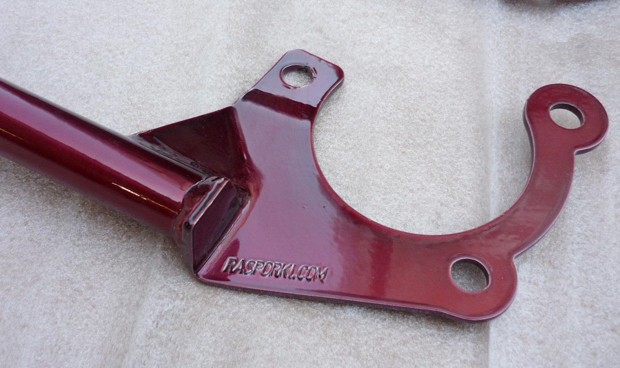 Болезнь модели Colt 6 - трещины на моторном щите под жабо. Причина в вибрации передних стаканов. Для предотвращения трещин и снятия нагрузки со стаканов предназначена данная распорка. Она выполнена цельной и это важно. Регулировка не требутся и не рекомендована для Colt, поскольку схождение стаканов не характерно для этой модели.