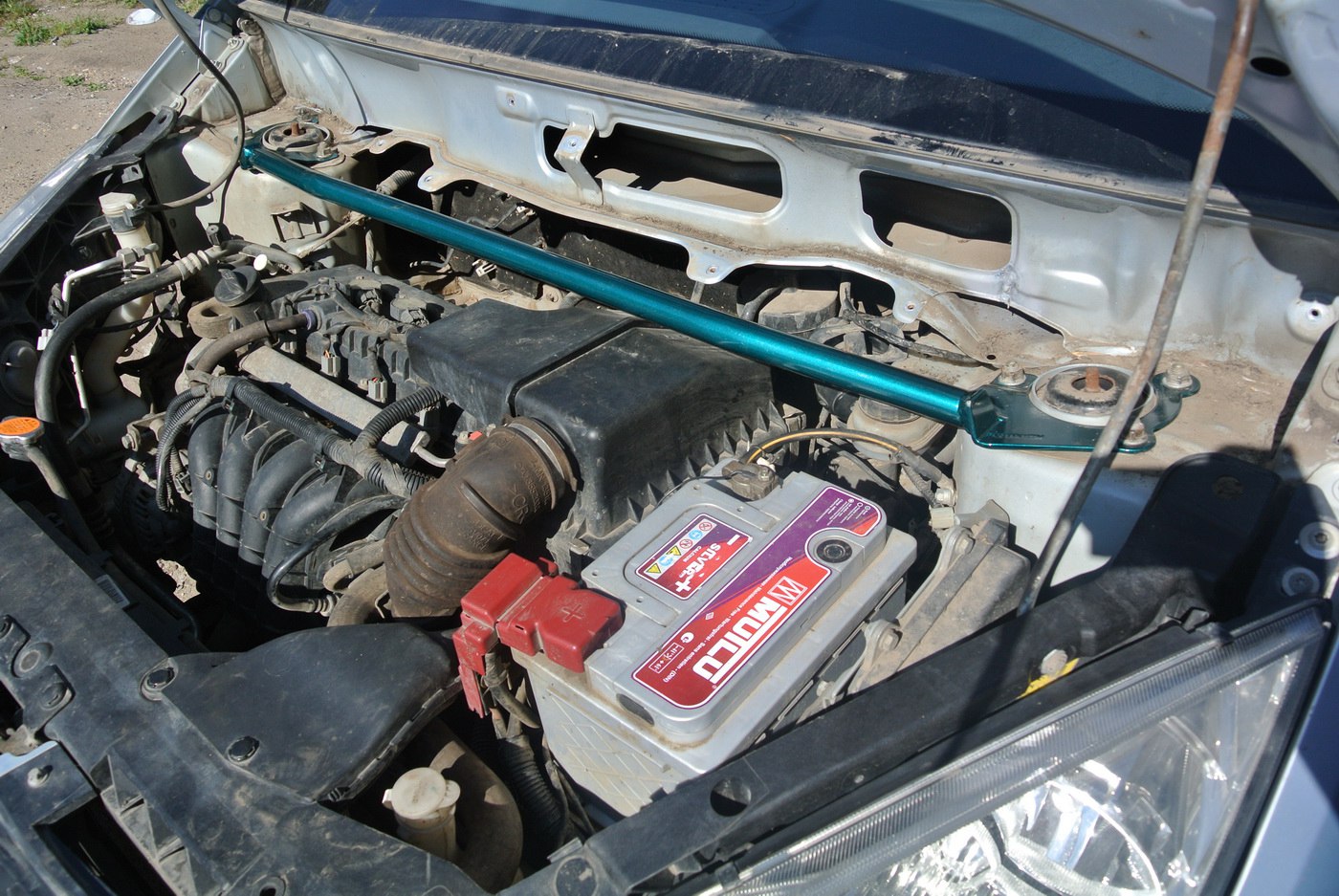 При установке распорки следует снять жабо, прикрутить распорку к стаканам и поставить жабо на место. Распорка проходит вдоль жабо и не препятствует работам под капотом. Крепления распорки формованы под форму стаканов. Воздушный фильтр остается в доступе и заменяется без снятия распорки.