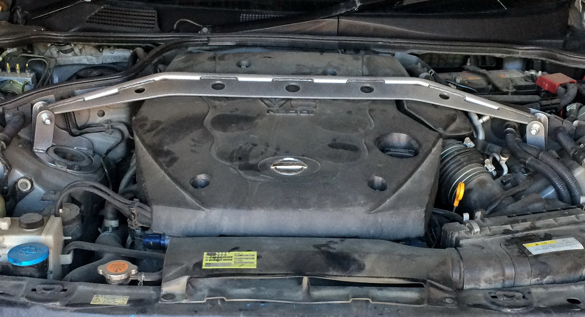 Для Skyline V35, Stagea M35, Infinity G35 распорка оригинальной формы для размещения в тесном пространстве между двигателем и капотом.