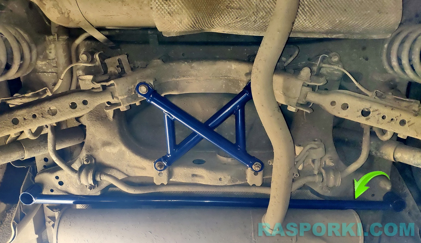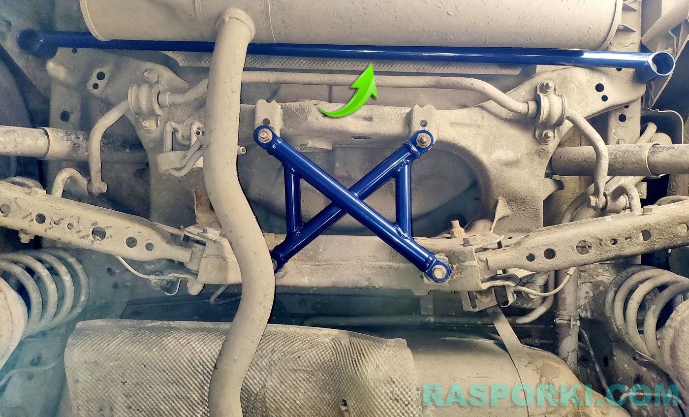 Классический и обязательный усилитель для всех автомобилей любой марки. Укрепляет корму автомобиля, снижает диагональное скручивание кузова, особенно на кузове кроссовера. Соединяет и фиксирует задние лонжероны между собой. Устанавливается под родные болты крепления подрамника.