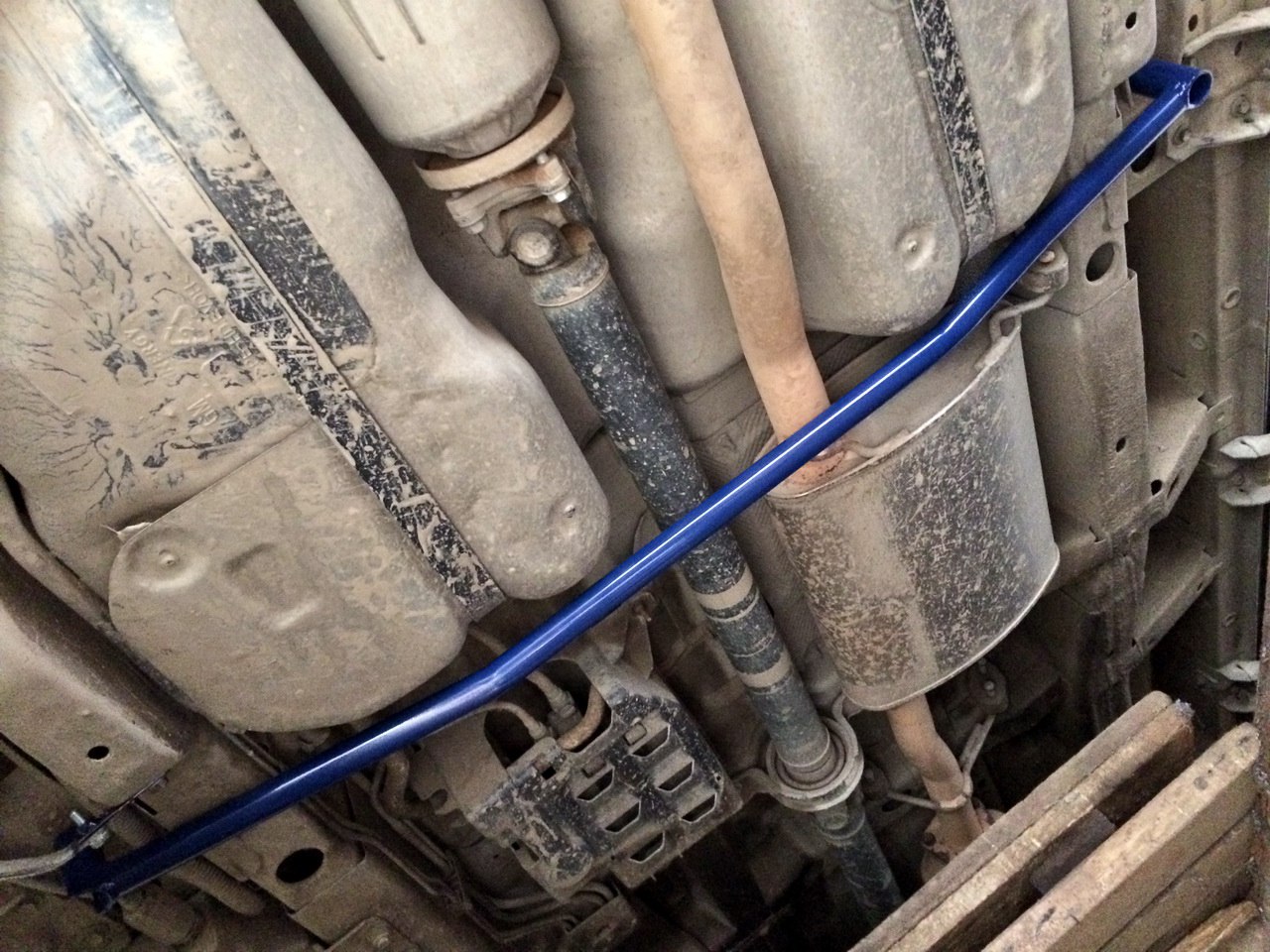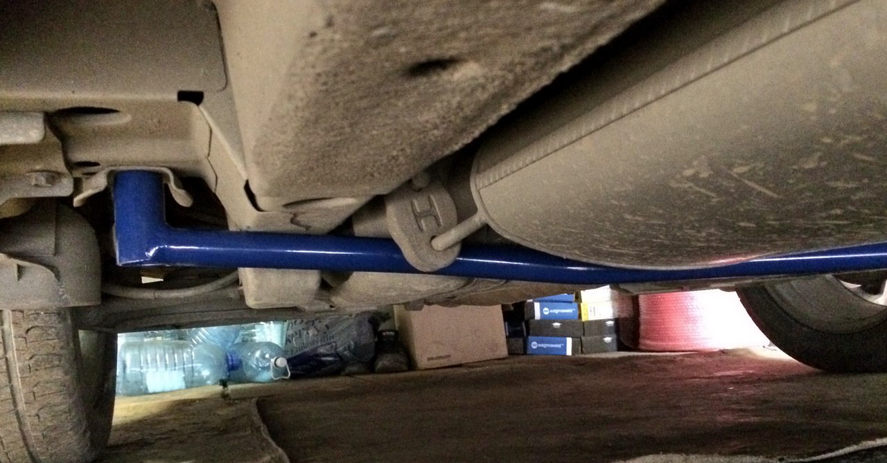 Подходит на все версии с любым двигателем. Распорка встает в штатные силовые места крепления усилителей, размещается перед топливным баком. На левой стороне предусмотрено место для тормозного троса, в комплект распорки добавлена планка для переноса крепления троса в сторону во избежания перегиба. Дорожный просвет автомобиля сохраняется.